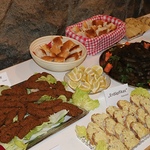 SchülerInnen und Eltern der Neuen Mittelschule Schärding boten in der Pause Kostproben aus ihrem internationalen Kochbuch an. Köstlichkeiten aus Fairem Handel gab es vom Weltladen Schärding.